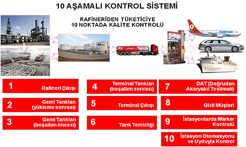 Petrol Ofisi ürünleri rafineriden müşterilerinin aracının deposuna gelene kadar uzaydan uydu ile kontrol edilmesinin yanı sıra, tam 10 farklı noktada kalite kontrol zinciriyle de denetlenmektedir.